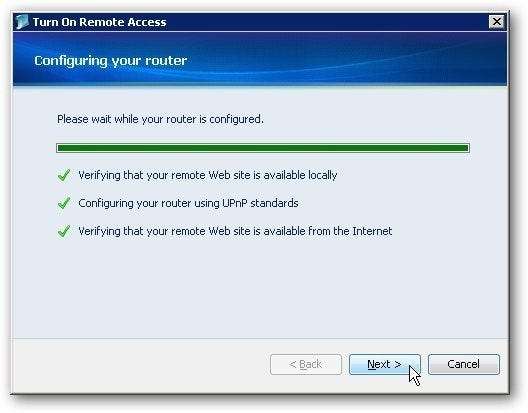 Panduan Akses Jarak Jauh dimulai agar Anda dapat memulai dengan mudah. Ini memverifikasi situs web jarak jauh Anda tersedia dan mengkonfigurasi router Anda menggunakan standar UPnP.