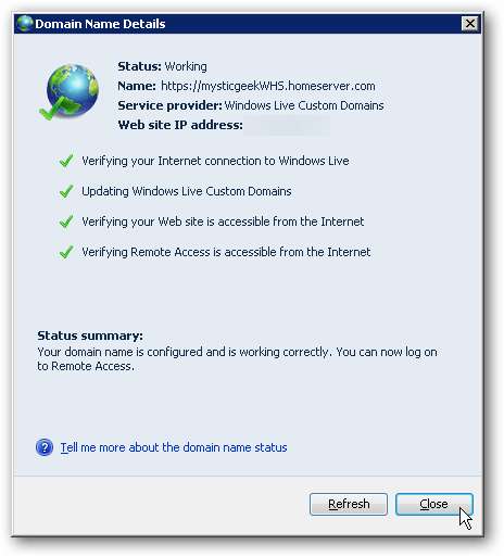 Kemudian segarkan informasi domain Anda untuk memverifikasi semuanya bekerja dengan benar. Untuk tutorial lengkap, lihat artikel kami di cara mengatur akses jarak jauh di WHS .