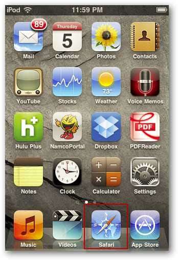 Buka browser dari menu utama di iPod Touch Anda… di sini kami menggunakan Safari.