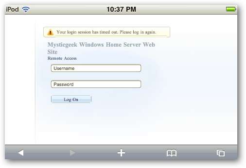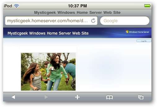 Sekarang setelah kami memiliki Akses Jarak Jauh dan Domain kami dikonfigurasi, kami akan dapat mengaksesnya dari mana pun kami memiliki koneksi internet. Sekali lagi, di sini kami menggunakan iPod Touch, tetapi Anda dapat mengaksesnya dari komputer atau perangkat pintar apa pun seperti iPhone, Droid, atau perangkat portabel apa pun yang berkemampuan Internet.