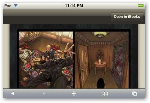 Di sini kami melihat komik dalam format PDF. Perhatikan opsi untuk membukanya di iBooks