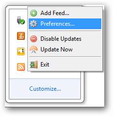 Buka preferensi Feed Notifier, dengan pergi ke Mulai> Semua Program> Feed Notifier , atau klik kanan pada ikon baki sistem dan memilih Preferensi .
