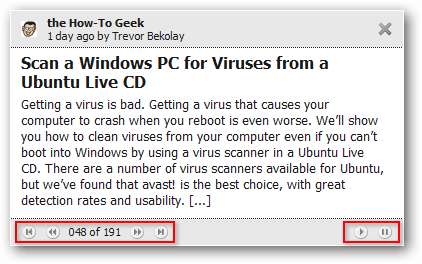 Anda dapat menelusuri artikel dengan menggunakan tombol maju dan mundur di kiri bawah, atau gunakan tombol putar / jeda untuk menelusuri artikel dalam gaya tampilan slide.