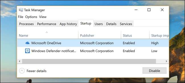Di Pengelola Tugas, pilih opsi "Detail Lainnya" di bagian bawah, lalu balik ke tab Memulai, tempat Anda akan melihat item baris yang melanggar. Lakukan pukulan yang bagus dengan tombol Nonaktifkan, dan selesai.