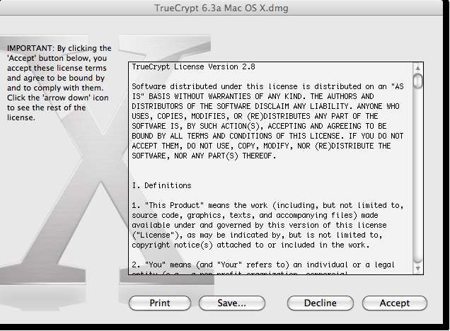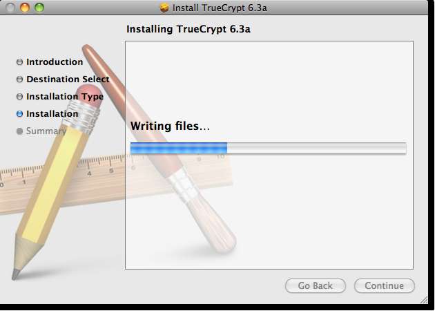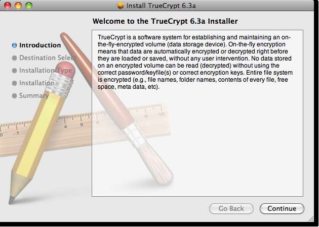 Setelah Anda mengunduh .dmg untuk menginstal TrueCrypt mount, maka instalasi akan dimulai.