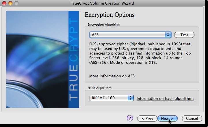 Ada beberapa algoritma enkripsi dan hash yang berbeda, secara default sebagian besar pengguna harus menggunakan AES dan RIPEMD-160.
