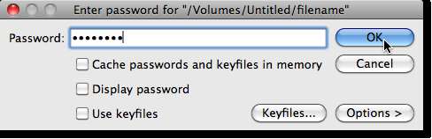 Beri tahu TrueCrypt untuk memasang volume dengan mengklik Pasang.