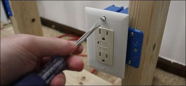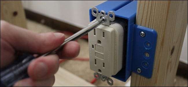 Dengan stopkontak GCI tersebut di tempatnya, gunakan dua sekrup yang disertakan untuk memasang stopkontak ke kotak persimpangan.