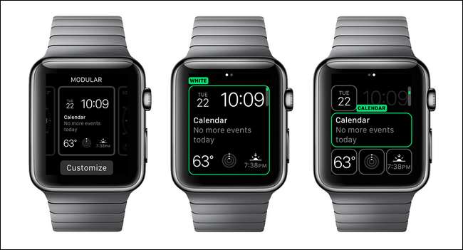 Apple Watch telah mengalami komplikasi sejak awal, bit informasi pada Utilitas dan tampilan jam Modular seperti matahari terbit / jadwal yang ditetapkan, cuaca, dan sebagainya, tetapi baru-baru ini dengan pembaruan ke Watch OS 2.0 Apple Watch mendukung ketiga- integrasi aplikasi pesta ke tampilan jam.