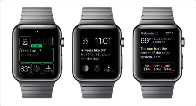 Jika Anda perlu memperbarui Apple Watch Anda, lihat panduan kami Cara Memperbarui Apple Watch Anda ke Watch OS 2.0 sebelum melanjutkan. Jika Anda mencari aplikasi yang baru diperbarui yang mendukung sistem komplikasi baru yang diperbarui, Anda selalu dapat menjelajahi App Store melalui aplikasi Apple Watch di iPhone Anda atau Anda dapat langsung mengambil aplikasi yang kami gunakan untuk tutorial ini: Cuaca Wortel .