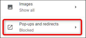 Di daftar setelan, klik opsi "Munculan dan Pengalihan".