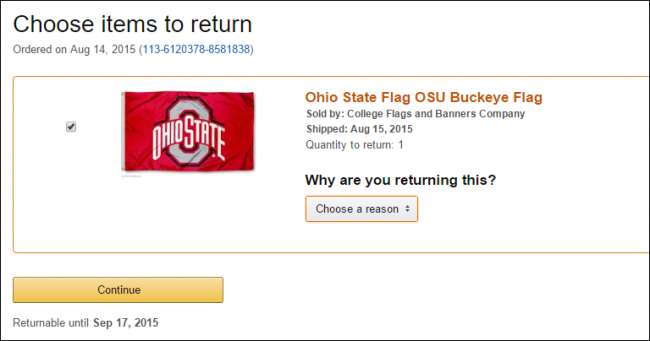 Jika Anda ingin mengembalikan barang, Anda akan memiliki jendela peluang yang sempit. Anda akan melihat berapa lama waktu yang Anda miliki sampai Anda dapat mengembalikan sesuatu, dan memilih alasannya.