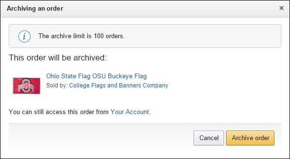 Anda masih dapat melihat pesanan yang diarsipkan dari "Akun Anda" dengan mengklik link "Lihat Pesanan yang Diarsipkan".