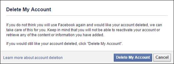 Facebook tidak menyediakan tautan sederhana di setelan Anda untuk menghapus akun Anda, sebagai gantinya Anda harus membuka www.facebook.com/help/delete_account untuk memulai prosesnya.