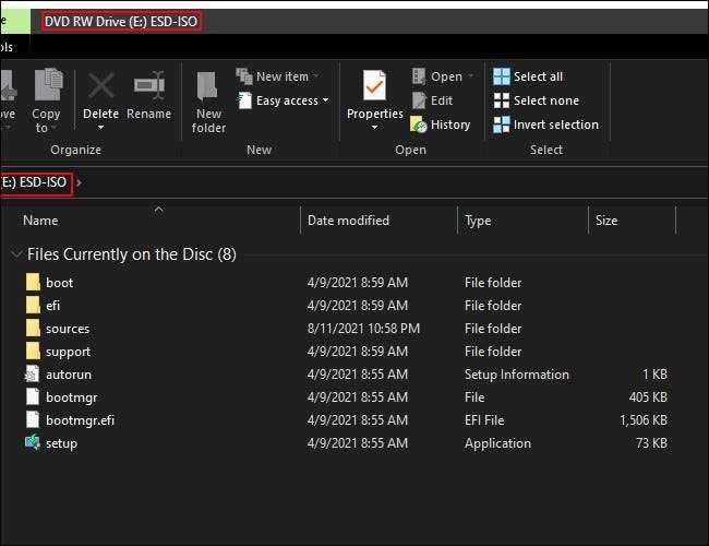 Jika Anda ingin memeriksa disk sendiri, buka File Explorer dan buka drive disk optik Anda. Jika disk ditulis dalam sistem file yang dapat dibaca Windows (dan bukan format Linux, misalnya), masing-masing file yang membuat gambar ISO awal akan hadir di sini dan siap digunakan.