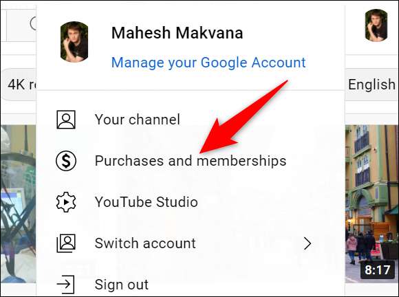 Di menu profil yang terbuka, pilih "Pembelian dan Keanggotaan."