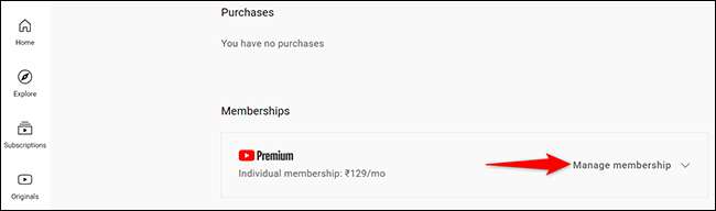 Anda akan berada di halaman "Pembelian dan Keanggotaan". Di sini, di bagian "Premium", klik "Kelola Keanggotaan."