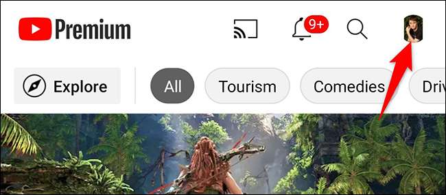 Untuk melakukannya, pertama, luncurkan aplikasi YouTube di ponsel Anda. Di sudut kanan atas aplikasi, ketuk ikon profil Anda.