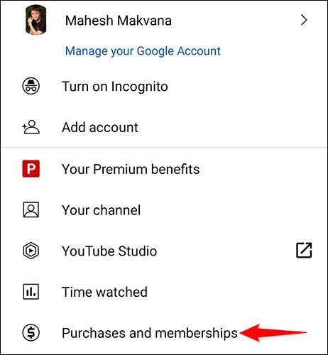 Di halaman profil, ketuk "Pembelian dan Keanggotaan."