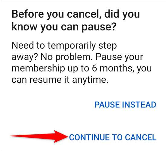 YouTube akan menampilkan pesan yang mengatakan Anda dapat menjeda alih-alih membatalkan langganan Anda. Untuk melanjutkan pembatalan, klik "Lanjutkan untuk membatalkan" di kotak pesan ini.