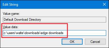 dengan jalur lengkap yang Anda ingin Edge gunakan sebagai folder unduhan default Anda. Pastikan untuk meninggalkan tanda kutip di tempatnya.