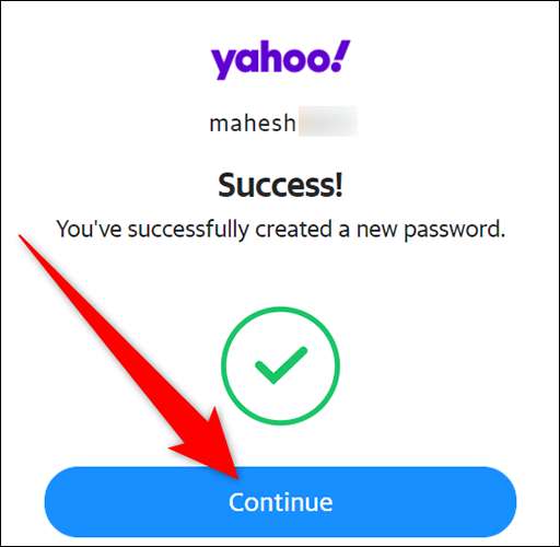 Yahoo akan menampilkan pesan "sukses". Ini menunjukkan kata sandi Anda berhasil diubah. Untuk pergi ke halaman berikutnya, klik "Lanjutkan" di halaman saat ini.