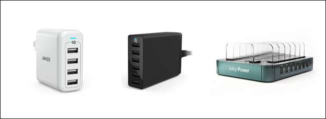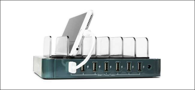 Banyak orang melewatkan manfaat menggunakan stasiun pengisian daya karena ketika mereka berpikir tentang "stasiun pengisian daya", mereka memikirkan perangkat besar seperti rak yang lebih terlihat di rumah di laboratorium komputer sekolah daripada di meja samping tempat tidur mereka. Meskipun Anda pasti bisa mendapatkan salah satu dari mereka untuk rumah Anda jika Anda ingin menopang, katakanlah, semua tablet keluarga di satu tempat yang teratur, sebagian besar orang akan dilayani dengan baik dengan membeli stasiun pengisian USB multi-port sederhana.