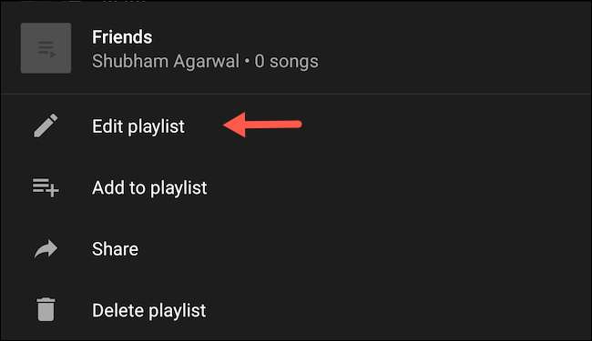Dalam daftar yang diperbarui, ketuk ikon menu tiga titik di sebelah kanan daftar putar baru dan kemudian pilih "Edit Daftar Putar."