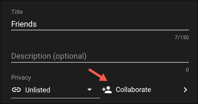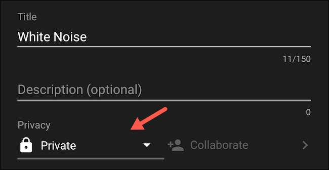 Anda dapat menambahkan kolaborator ke daftar putar yang ada juga dari ikon menu tiga-titik setiap item & GT; Edit menu Daftar Putar. Secara default, semua daftar putar Anda bersifat pribadi. Anda harus mengedit dropdown privasinya, yang terletak di samping tombol "berkolaborasi".