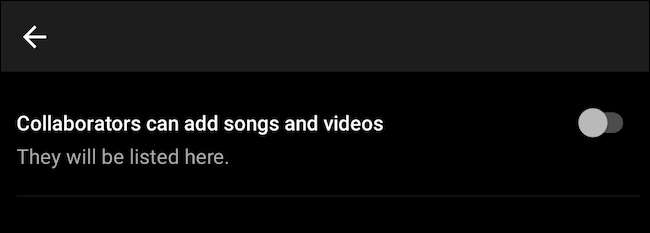 Di bawah tab "berkolaborasi", aktifkan "kolaborator dapat menambahkan lagu dan video ke daftar putar ini" beralih. Tekan "Selesai" untuk menyimpan perubahan.