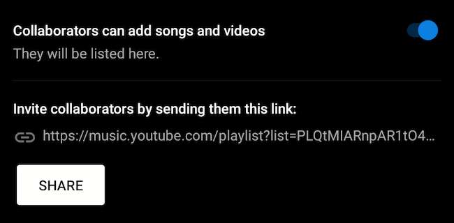 Pada layar berikut, aktifkan "kolaborator dapat menambah lagu dan video" beralih.
