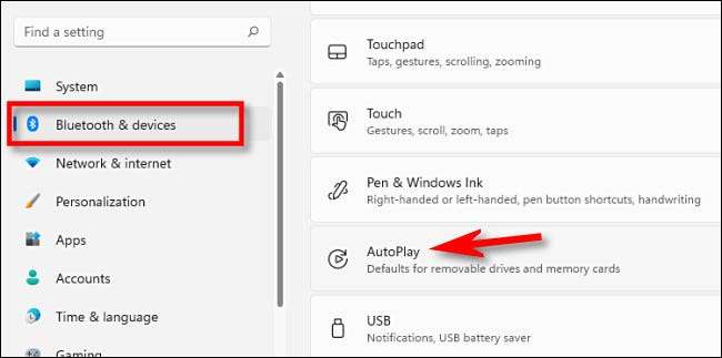 Ketika Pengaturan terbuka, klik "Bluetooth & Amp; Perangkat "di sidebar, lalu pilih" Autoplay. "