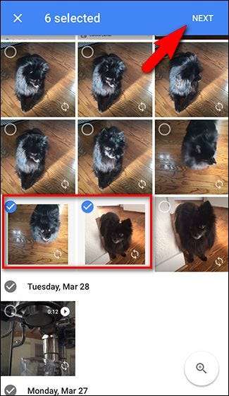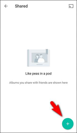 Di halaman "Dibagikan", klik simbol + di pojok kanan bawah untuk membuat album. Anda akan diminta untuk memilih foto untuk album — pilih sesedikit atau sebanyak yang Anda inginkan, lalu klik "Berikutnya".
