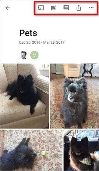 Di dalam album, Anda akan melihat serangkaian ikon di sudut kanan atas. Dari kiri ke kanan, mereka memungkinkan Anda: