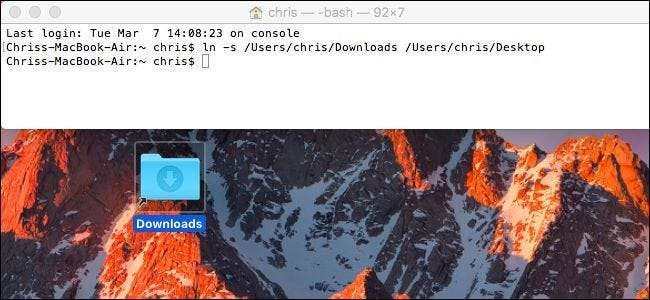 Tautan simbolik mirip dengan alias, kecuali mereka bekerja di setiap aplikasi di Mac Anda — termasuk di Terminal. Mereka sangat berguna ketika aplikasi tidak ingin bekerja dengan benar dengan alias biasa. Di macOS, Anda membuat tautan simbolik di Terminal menggunakan