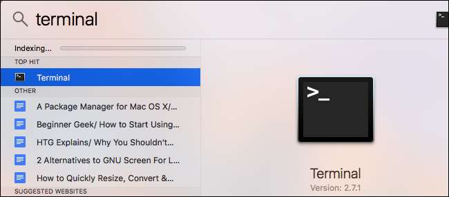 Tekan Command + Spasi, ketik "Terminal", lalu tekan "Enter" untuk membuka Terminal dari pencarian Spotlight. Arahkan ke Finder> Aplikasi> Utilitas> Terminal untuk meluncurkan pintasan Terminal.