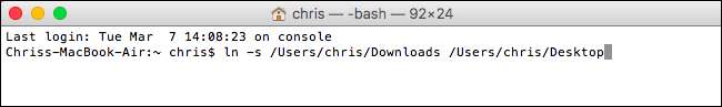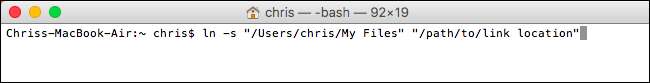 ln -s "/ Users / name / My Files" "/ Users / name / Desktop / My Link"
