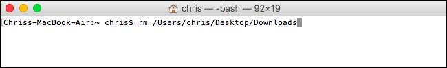perintah, yang merupakan perintah yang sama yang Anda gunakan untuk menghapus file lain. Jalankan perintah dan tentukan jalur ke tautan yang ingin Anda hapus: