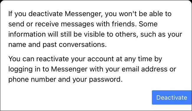 Gunakan tombol Big Blue "Nonactivate" untuk menonaktifkan Messenger Facebook.