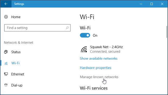 Prosesnya jelas di Windows 7, di mana Anda cukup memilih " Kelola Jaringan Nirkabel "Di Control Panel Network and Sharing Center dan hapus jaringan yang disimpan. Windows 8 menghapus opsi ini dan memaksa Anda untuk menggunakan perintah Command Prompt. Tetapi di Windows 10, Microsoft sekali lagi menyediakan antarmuka grafis untuk ini.