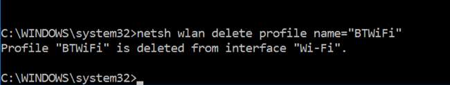 Misalnya, Anda ingin menghapus jaringan bernama "BTWiFi". Anda akan mengetik perintah berikut: