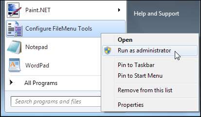 Setelah terinstal, luncurkan aplikasi Configure FileMenu Tools dari menu Start atau desktop Anda untuk memulai. Anda juga dapat memilih opsi Configure FileMenu Tools di submenu FileMenu Tools.