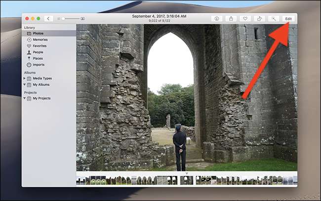 Fungsi pengeditan di Foto tidak tersembunyi: cukup buka foto yang Anda suka, lalu klik tombol "Edit" di kanan atas.