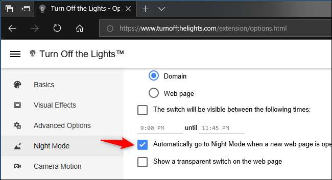 Anda juga dapat mengaktifkan opsi "Secara otomatis pergi ke Mode Malam saat halaman web baru dibuka" untuk selalu menggunakan Mode Malam secara default.