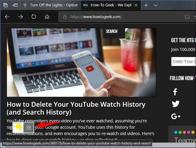 Jika Anda memutuskan untuk tidak menggunakan gaya situs web gelap di masa mendatang, Anda dapat mengeklik menu> Ekstensi di Edge untuk mengonfigurasi, menonaktifkan, atau mencopot pemasangan ekstensi Matikan Lampu.