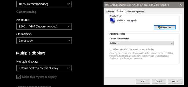 Pengaturan kecepatan refresh yang salah juga dapat menyebabkan kedipan. Kecepatan refresh adalah berapa kali komputer mengirimkan gambar ke monitor per detik, dinyatakan dalam hertz. Sebagian besar monitor LCD menggunakan 59 atau 60 hertz, meskipun 75Hz, 120Hz, dan 144Hz juga ditemukan pada monitor premium. Masuk ke pengaturan tampilan sistem operasi Anda (klik kanan desktop dan buka Pengaturan tampilan> Properti adaptor tampilan> Monitor di Windows 10) untuk memastikan pengaturan hertz yang tepat diterapkan — Anda mungkin perlu memperbarui driver video Anda juga.