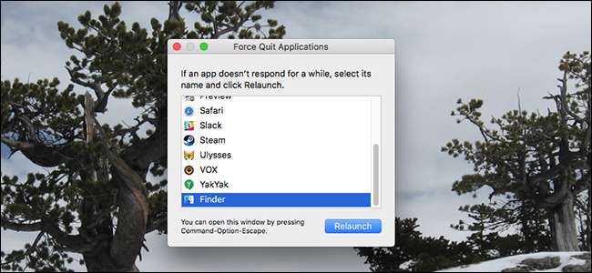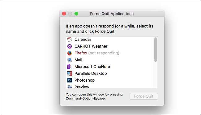 Menu Force Quit adalah jendela sederhana, mengambang di atas semua jendela Anda, dengan daftar aplikasi yang sedang berjalan.