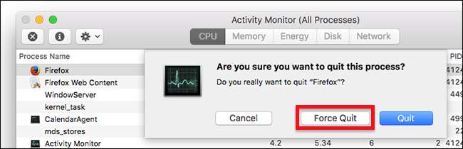 Ini berarti macOS mengetahui bahwa aplikasi mengalami masalah. Untungnya, Anda dapat memaksa keluar dari aplikasi tersebut semudah yang lain: cukup pilih, lalu klik Force Quit.