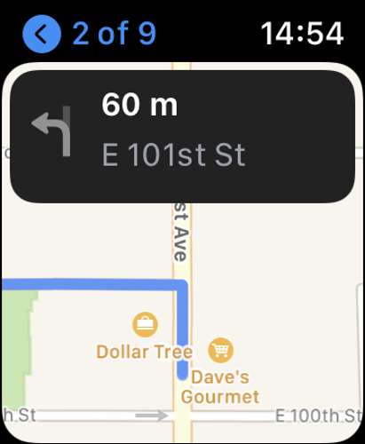 Saat Anda mengetuk arahan "Go," dikirim ke Apple Watch Anda. Cukup angkat pergelangan tangan Anda dan Anda akan melihat arah Anda saat ini yang tercantum. Jika Anda tidak melihat apa-apa, buka aplikasi pendamping "Apple Maps" di Apple Watch Anda, lalu ketuk rute Anda saat muncul.