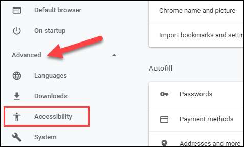 Di bilah sisi kiri, perluas bagian "Advanced" dan pilih "Aksesibilitas."